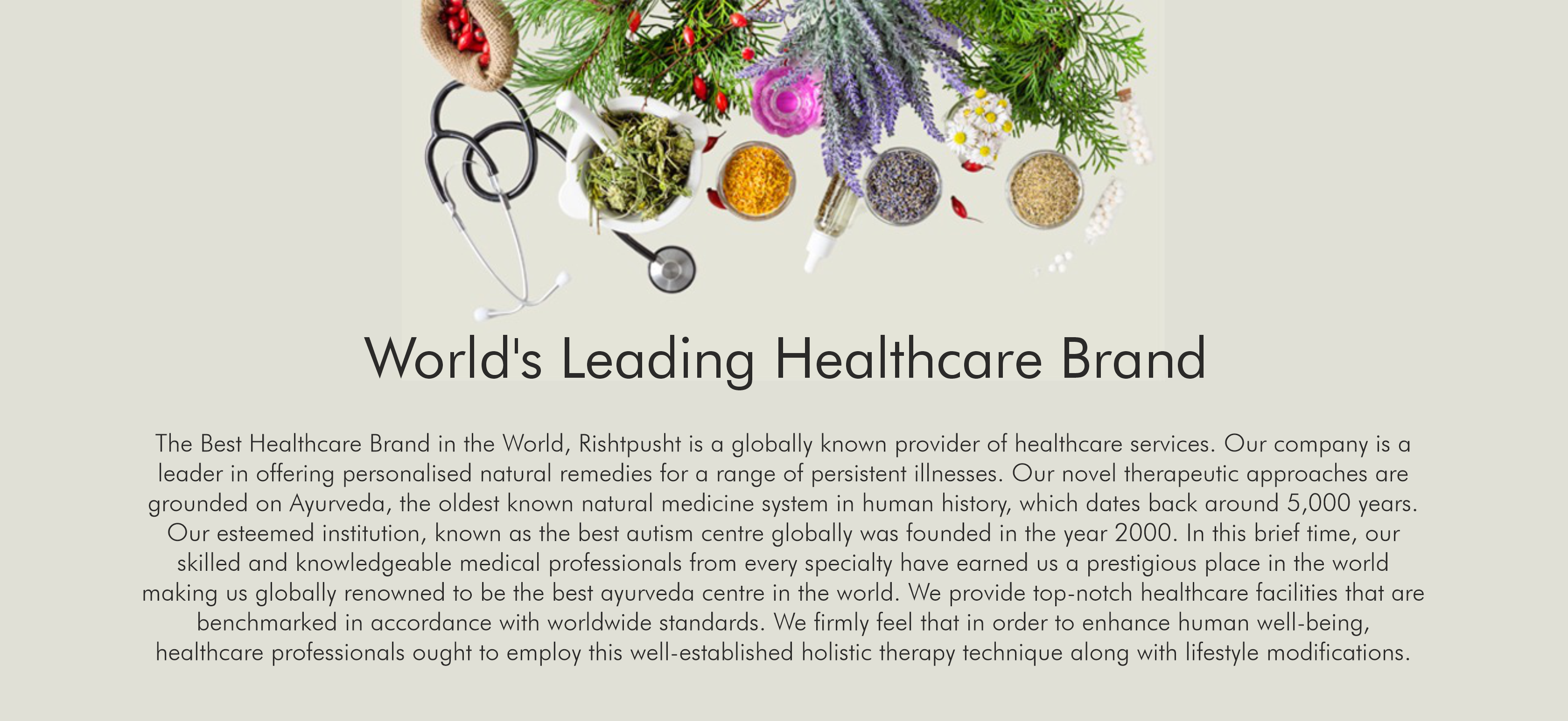 Rishtpusht is a globally recognized healthcare brand specializing in Ayurvedic treatments. We offer personalized natural remedies for various chronic ailments through a network of Panchkarma healthcare centers and a range of herbal products.