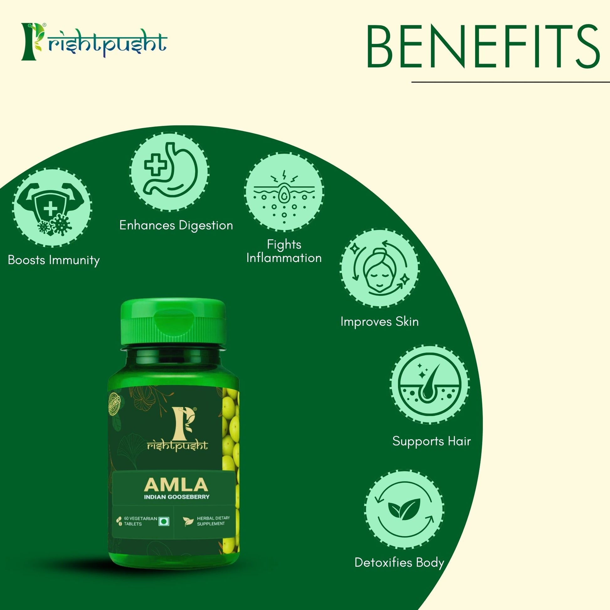 Rishtpusht Amla Tablets | Natural Source of Vitamin C & Antioxidants | 60 Tablets (Pack of 1)