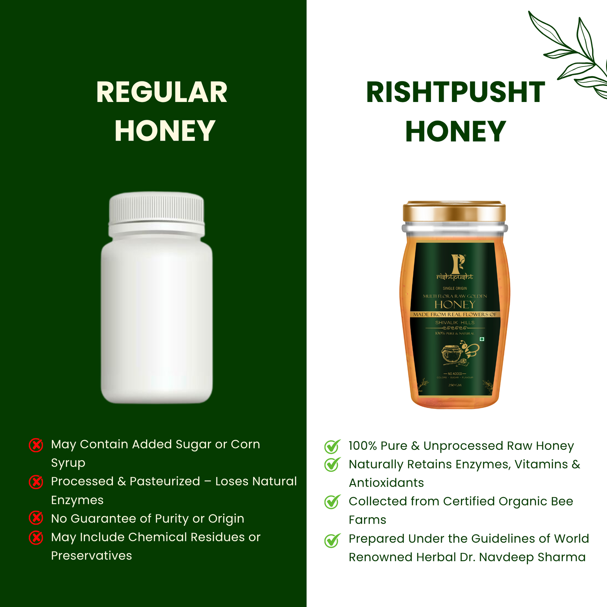 Experience the untouched purity of nature with our Multiflora Raw & Unprocessed Golden Honey, sourced from the foothills of the Himalayas (Shivalik Hills). This honey is 100% pure and natural, collected straight from wildflower blooms without any interference.