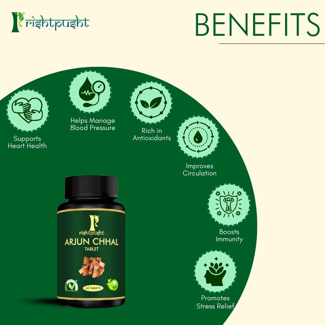 - STRENGTHENS HEALTH HEART - Made with extracts of Arjuna Bark, a rich source of healing properties, Rishtpusht Arjun Chhal provide essential nutrients to nourish the heart, making them function properly. Arjuna bark is the primary ingredient that maintains the healthy state of your heart and other cardiovascular parts.